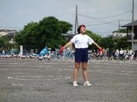 赤組の応援。運動場に団長の声が響きます。毎日練習してきて、その成果が出ています。6年生にとって最後の運動会です。