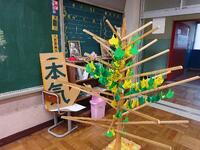 学校で保管している卒業アルバム・職員の小さいころの写真クイズ等があります。また、「本気ツリー」を設置し、児童と職員がお祝いメッセージを書いたイチョウの絵馬をかけられるようになっています。