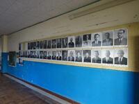 南校舎と北校舎の渡り廊下には、歴代校長の写真を掲示してあります。今回は、150年の歴史を感じる特別な子どもまつりになっています。