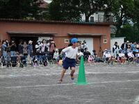 プログラムナンバー15。2年生の「学級対抗リレー」です。コーンを折り返すリレーですが、そのまわり方がとても上手です。スピードを落とさないで体を傾けながら回っていました。抜きつ抜かれつのレースでした。