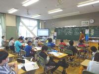 理科室では、5年生が「台風と天気の変化」を学習していました。台風によってどんな災害が起こるか、災害を防ぐにはどうしたらいいか等を考えていました。