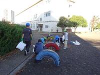 2年生・5年生・なかよしのみんなが落ち葉拾いをしました。少し冷え込む朝ですが、朝日がキラキラと差し込みます。軍手をした両手で落ち葉をかき集め、袋の中に詰めていました。湿った葉も多く、拾いにくい所もありましたが、みんな一生懸命です。本気の木の周りには黄色い葉が落ちていてとてもきれいでした。大量の落ち葉なので、ほうきや熊手を使って集めていました。落ち葉で一杯の袋がたくさん並び、みんなで協力すると大きな力になることを実感しました。