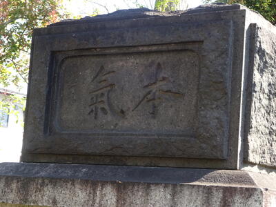 「本氣」の石碑が、遊びに来る子や学校の前を通る人達を見守っています。