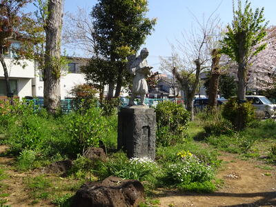 「二宮尊徳(金次郎)」像の周りに花が咲いてとてもきれいです。