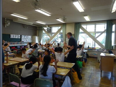 ALT(Assistant Language Teacher)と、外国語担当の授業です。