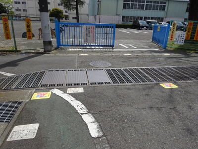 4/7(金)の入学式、始業式に登校する際に、ステッカーの位置で立ち止まって安全を確認してほしいと思います。