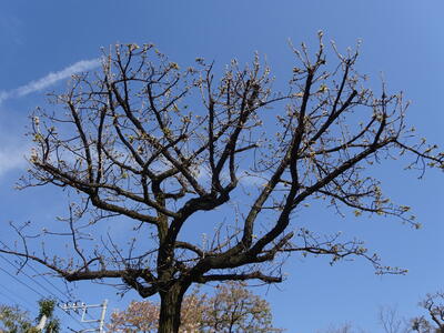 木の上部の新芽が大きくふくらみ、葉が広がっている部分もありました。