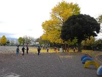 昼休みの運動場です。空が曇りはじめ、気温も低いですが、みんな元気いっぱいです。本気の木から落ちてくる黄色いイチョウの葉を集めて「落ち葉合戦」」をしていました。葉が舞い上がりきれいです。みんな大騒ぎでした。その横のバスケットコートでは、高学年がバスケを楽しんでいます。パスを回して軽快な動きでした。運動場の反対側ではドッジボールが白熱し、盛り上がっていました。グレーな空に東っ子の元気な声が響いていました。