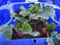 植木鉢の「小さなかぶ」が、寒さに負けず葉を広げています。かぶも大きくなりました。ハツカダイコン・ラディッシュと言われ、赤以外にもピンク、白、黄色、紫色があるそうです。