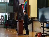 Teamsで各学級に伝えられ、教室で放送を見ました。1年間学校を支えていく上級生の話をみんなしっかりと聞いていました。