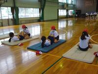 雨で延期になっていた5・6年生の新体力テストを1・2時間目に行いました。体育館内では、上体起こし・反復横跳び・立ち幅跳びの3種目を測定しました。