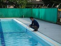 救急法講習会の後に、プールの使用講習会も行いました。塩素濃度、水温、気温など児童がプールを使用できるまでにはたくさんの確認事項があります。そのひとつひとつを確認しました。来週からプールの水位が上がって、満水状態になります。きれいなプールで子供達が安心、安全で、しかも楽しい授業ができるよう、準備していきます。