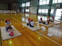 体育館では、「上体起こし」「反復横跳び」「立ち幅跳び」