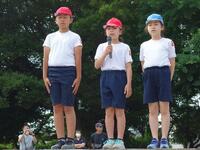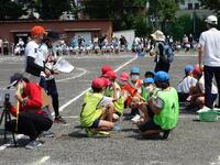 放送係、決勝審判係など暑い中、みんな子供達は頑張っています。想定していた以上に天気が良くなり、気温が30度近くになりました。途中で水分補給の休憩を取ります。