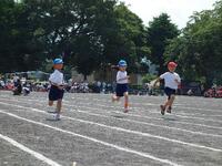 プログラムナンバー8。3年生の「最後まで走りぬけ」です。運動場半周を全力で駆け抜けます。距離が長くなってもスピードが落ちません。コーナーを駆け抜けるときの体の傾け方が絶妙です。さすが3年生。
