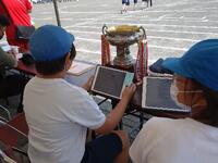 2年生は、タブレットの絵を見て「たからさがし」をしていました。