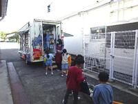 先月の試行巡回を経て、「ジンタ号」がやって来ました。ボランティアさんも3名来てくださり、ありがたいです。図書館の職員の皆さんの工夫で、返却カウンターを入口付近に設置してくださったので、流れがとてもスムーズでした。本を選んだ子達はうれしそうに貸し出しの手続きをしてもらっていました。この土日に、ゆっくりじっくり読めるといいです。