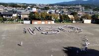 延期になっていた航空写真の撮影日です。最高の天気となりました。早朝より、カメラマンさんが校庭に「150」の文字を書いてくださいました。9:20頃から体育着とカラー帽を着用した全校児童が集まり、教務主任の指示で「150」の文字に並びます。スクールサポートスタッフに校舎から撮影してもらったところ、「150」の文字がきれいに見えていました。全員が揃い、ドローンが上空に舞い上がりました。「おおっ!」みんな目でドローンを追います。カメラマンさんの合図で何枚も撮影しました。