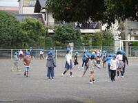 快晴の運動場に、1・6年生がペア集会のため集まってきました。今日の遊びは「ドロケイ」です。6年生は1年生を気づかいながら、1年生は6年生と一緒で本当に楽しそうに遊んでいました。思いやりと元気をペアで遊ぶ姿から感じた朝でした。