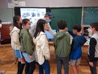 災害に備え、県内の様々な所にカメラが設置され、センター内で各所の様子が確認できます。モニターの前でみんな夢中で見ていました。4年生が知っている場所の映像も見せていただきました。今日、県内で災害は発生していないようです。