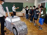 3・4年生が起震車体験をしました。危機管理課の担当者の説明を聞いてから、4人ずつ起震車に乗車し、揺れを体験しました。車内のテーブルは、しっかりと固定してあるため、4人がつかまっても動きません。家具の固定や、食器やガラスの飛散防止はとても大切だと思いました。4年生は先日社会科見学でも多くのことを学んだので、今日の体験と合わせて、今後の学習に活かしてほしいと思います。