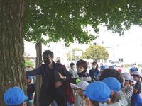 すばらしい演奏をしてくださった増田太郎さんが、「本気の木」を確認するために、校庭まで足を運んでくださいました。マネージャーさんや150周年記念スタッフ、職員、そして子供達も一緒です。増田さんは、本気の木に触れ、子供達にも声をかけてくださいました。「150周年おめでとう!ありがとう!」自然と拍手がわき起こりました。