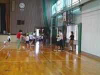 伊豆の国特別支援学校から2年生のお友達が来校し、なかよし学級のみんなと交流をしました。体育館で「体育」を行い、気もちのよい汗をかきました。みんな一緒に笑顔でランニングをすることができました。太鼓の合図で集合した後は、水分補給です。特別支援学校のお友達も、しっかり水分をとって、次の種目にチャレンジしていました。なかよく過ごせてよかったです。