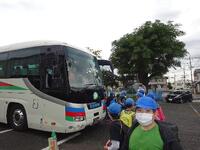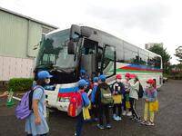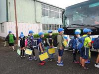 ちょうど良い気温で社会科見学日和となりましたが、小雨が降り出しました。出発式を室内で行い、すぐにバスに乗り込みます。4年生、意欲にあふれていました。安全確認・見送りの用務員さんに手を振って出発です。