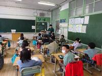 3・4年生が起震車体験をしました。危機管理課の担当者の説明を聞いてから、4人ずつ起震車に乗車し、揺れを体験しました。車内のテーブルは、しっかりと固定してあるため、4人がつかまっても動きません。家具の固定や、食器やガラスの飛散防止はとても大切だと思いました。4年生は先日社会科見学でも多くのことを学んだので、今日の体験と合わせて、今後の学習に活かしてほしいと思います。