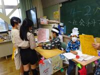 6の1も教室と多目的室を使っての大店舗です。修学旅行で学んだことを劇にしていました。みんな名演技です。新江ノ島水族館の再現場面では、イルカのジャンプも見られ驚きました。