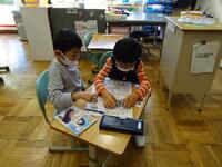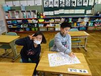 ぬり終わった子から、「いきもの すごろく」に挑戦です。水中の生き物・植物・虫・は虫類・鳥類・ほ乳類等の名前を確認しながらコマを進めます。ペアで仲よく活動できました。