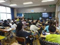 教育実習生が研究授業を行いました。5年理科「流れる水のはたらき」の授業です。「なぜ川原の石は下流に行くほど小さく、丸くなるのだろう。」前回考えた実験方法と予想を確認した後に、2種類ある実験道具を使って、一人ずつ実験を行いました。みんな一生懸命です。タブレット内のメタモジを使って、実験の過程が分かるように画像を貼り付けたり、説明を加えたりして上手にまとめていました。実習生の指示を聞いて、どの子も真剣に授業に取り組んでいました。