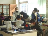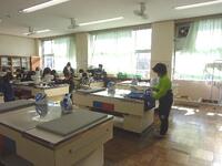家庭科室で5年生がエプロンの仕上げをしていました。ミシンで縫い終わった子から、アイロンがけやひも通しをしていました。担任とスクールサポートスタッフで手厚く支援をします。子供達はできあがったエプロンをうれしそうにながめていました。自分で作ったものには、特に愛着がわくと思います。