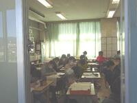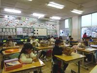 総合の授業で、「修学旅行思い出絵巻」を作成していました。「絵にそえる文を書く」のにポイントとして、事実と自分の思いを入れて書くとよいというアドバイスがありました。みんな思い出を振り返りながら、一生懸命考えていました。きっと素敵な絵巻ができそうです。