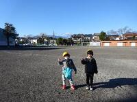 「ザザザザーッツ。」砂の音がする方を見てみると、全力で走って来る子がいました。誰もいない運動場を縦横無尽に駆けています。「速いね~。」と声をかけると、走って来てスライディングを見せてくれました。元気でうれしいです。