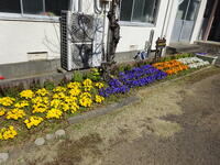 生きがい教室前の花壇です。パンジーがとてもきれいです。