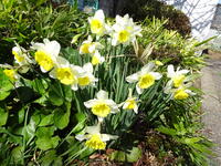 白門北側のラッパスイセン(喇叭水仙)です。おしくらまんじゅうをしているように元気に咲いています。