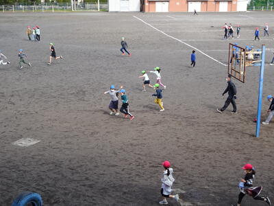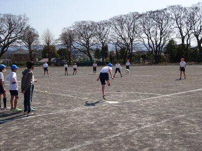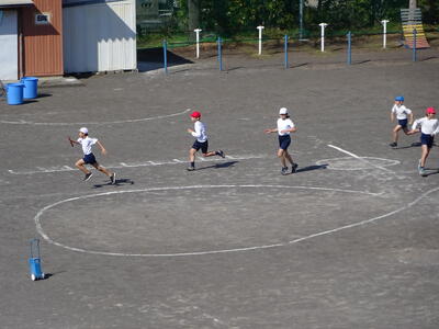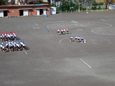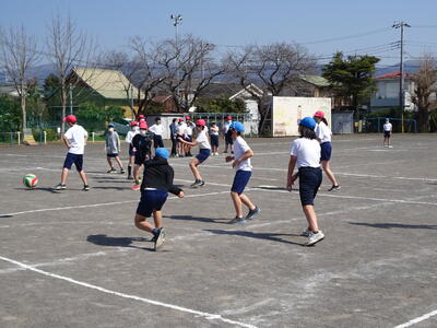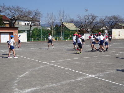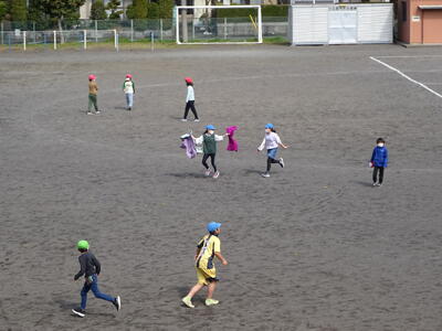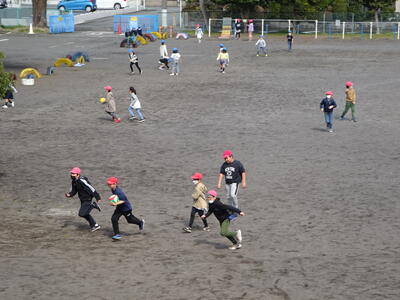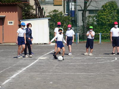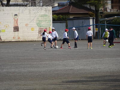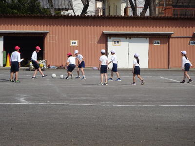 4年生が元気いっぱい走りながら、ボールを追いかけていました。