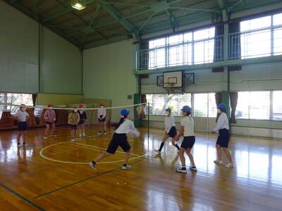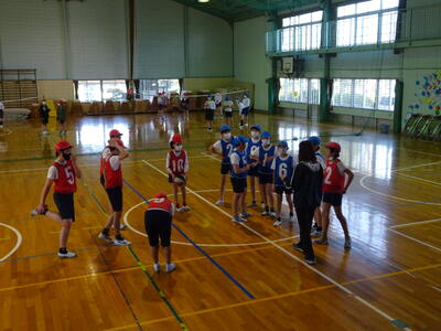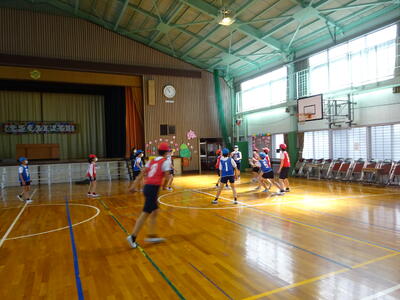 卒業した6年生が、バスケットボールを楽しんでいます。
