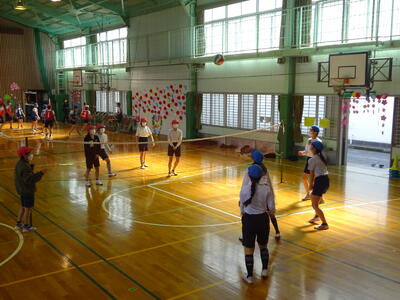 ドッジボール・キックベースベースボール・バレーボール・バスケットボールを運動場と体育館にわかれて行いまし