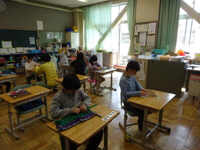 なかよし低学年のみんなが「鳥の巣バッグ」の制作をしていました。