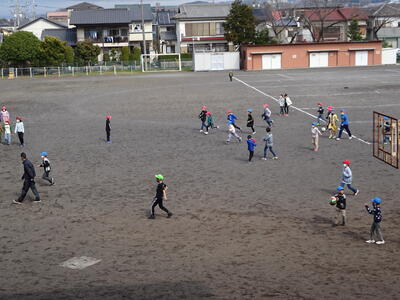 外周や遊具で遊んでいただくのは構いませんが、運動場の真ん中を突っ切ることはしないようにお願いします。
