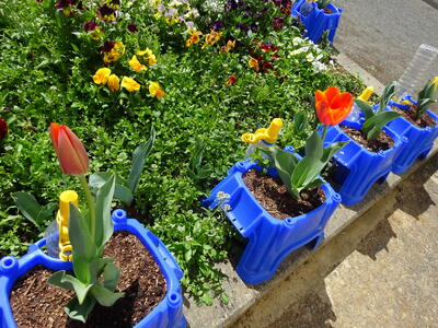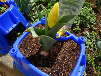 1年生の育てているチューリップです。芽がどんどん伸びてきています。