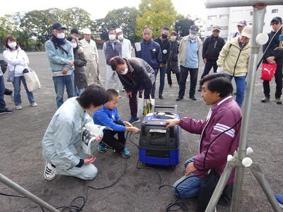 本校の教員が相手役をし、ボールを投げたり、パスをつないだりしました。