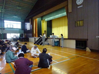 今日の昼休み、体育館でリハーサルをしました。