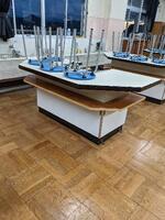理科室の実験台が生まれ変わりました。修繕をお願いし、最速の3日間でこんなにきれいになりました。職人さんの技はすごいです。作業中に通りかかった子達が「きれいにしてくださってありがとうございます。」「直してくださり、ありがとうございます。」等と声をかけていったそうです。職人さんは本当にうれしかったとお話してくださいました。戸棚の取手が無かった所に新しい物が付きました。戸棚の中もとてもきれいです。棚も付きました。明日から理科室が使用できますが、今まで以上に大切に使ってほしいです。