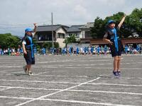 放送係、決勝審判係など暑い中、みんな子供達は頑張っています。想定していた以上に天気が良くなり、気温が30度近くになりました。途中で水分補給の休憩を取ります。