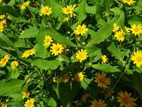 サツマイモの葉が生い茂り、ツルが伸びて元気です。秋までにお芋が大きく育つといいです。