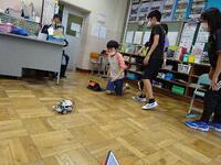 なかよし学級でレゴマインドストームを使ってプログラミングの学習を行いました。高学年&低学年のペアを組み、タブレットを使って操作しました。ICT支援員さんに助けてもらいながら、みんなあっという間に操作の仕方を覚え、前に進ませるだけでなく、くるくると回転させたり、バックさせたりをプログラミングしていました。