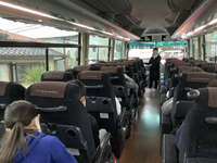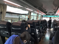 海老名SAでトイレ休憩を終え、出発です。たくさんの小学校が修学旅行のようで、いくつものバスが止まっています。みんな元気です。あと1時間で浅草に到着予定ですが、渋滞が始まっています。少し遅れるかもしれません。